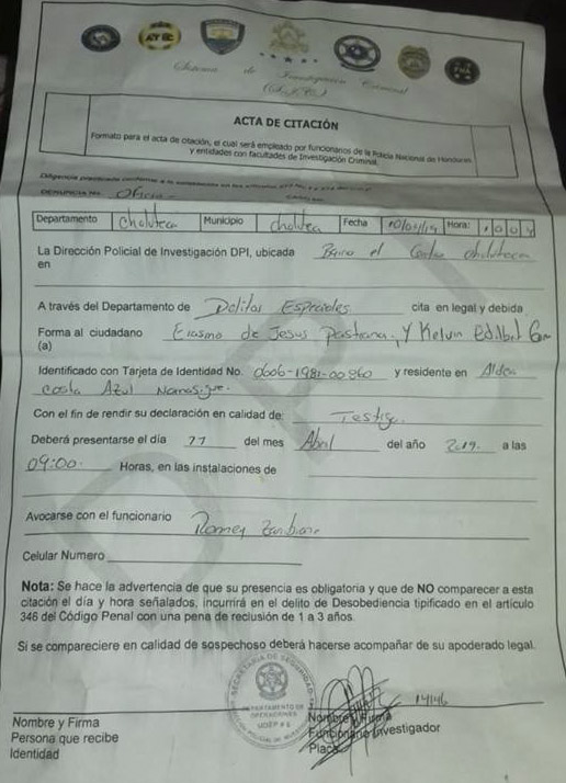 Tegucigalpa.- Ocho defensores del medio ambiente fueron citados hoy por la Dirección Policial de Investigación (DPI), en calidad de testigos, pero cuando se trasladaron de sus comunidades hasta la ciudad fueron encarcelados ya que el Juzgado de Letra de la ciudad de Choluteca extendió la citatoria a detención.
