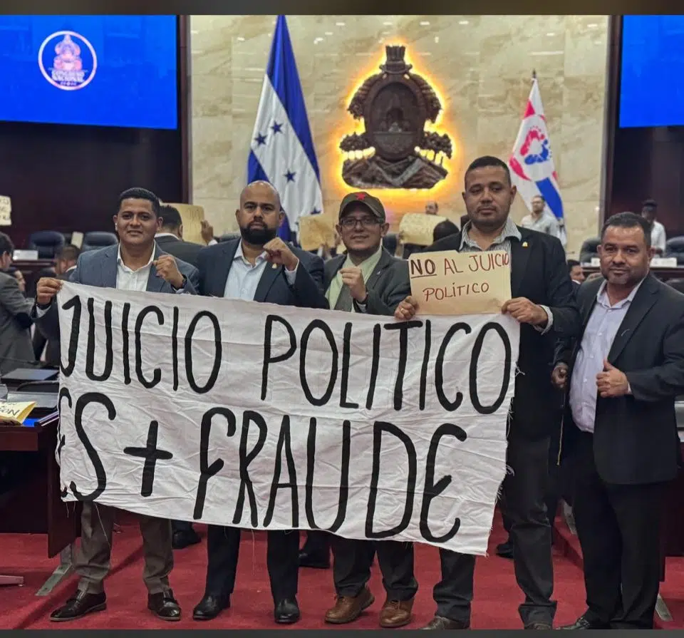 Los congresistas de Libre denunciaron que la decisión responde a una “confabulación” entre el Partido Nacional y el Partido Liberal, orientada —según señalaron— a retomar el control de las instituciones del sistema de justicia, como ocurrió en el pasado cuando el narco expresidente, Juan Orlando Hernández logró cooptar la institucionalidad. En medio de la protesta, los legisladores opositores interrumpieron el desarrollo de la sesión con consignas y reclamos dirigidos a la Junta Directiva.