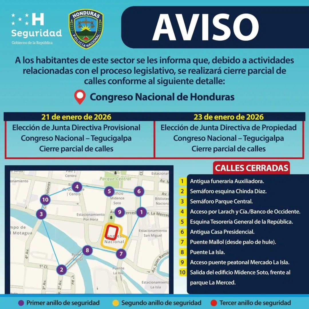 Tegucigalpa.-A pocas horas de la elección de la Junta Directiva Provisional del Congreso Nacional, programada para este 21 de enero, las autoridades han anunciado la instalación de un fuerte dispositivo de seguridad policial-militar en los alrededores del Poder Legislativo.