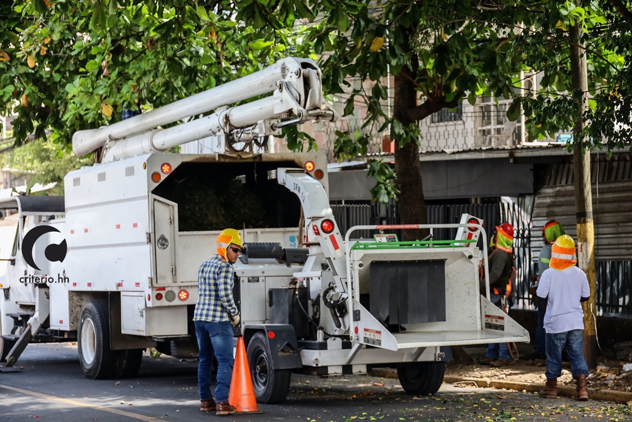 Personal de la ENEE realizando trabajos en el cableado eléctrico en Tegucigalpa, capital de Honduras. Foto: Horacio Lorca/Criterio.hn