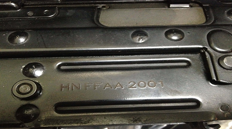 (Arma marcada con las iniciales de las Fuerzas Armadas de Honduras, que fue confiscada