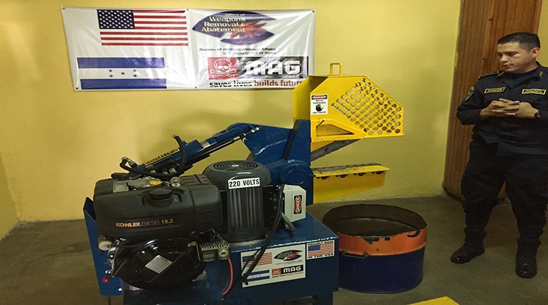 (Máquina donada por Estados Unidos para destruir las armas incautadas en
