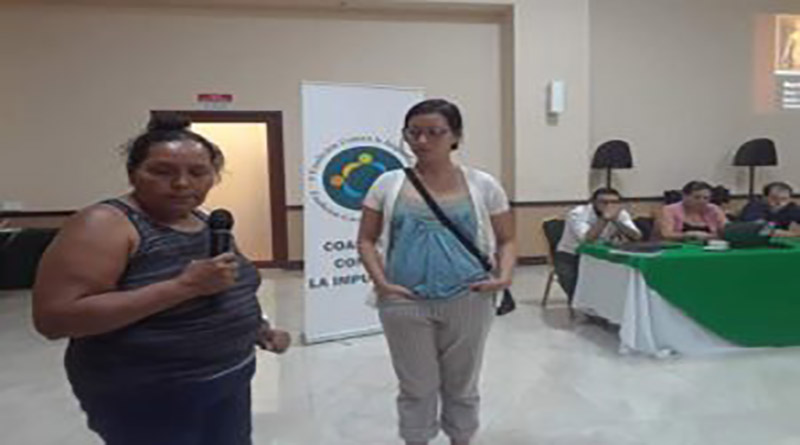 El pasado mes de julio, en la ciudad de Choluteca donde se celebró el foro público convocado por la Coalición Contra la Impunidad (CCI), integrada por el COFADEH y unas 50 organizaciones más, María Hernández denunció las constantes violaciones a los derechos humanos contra Santos y ella, desde ataques de particulares y persecución judicial.