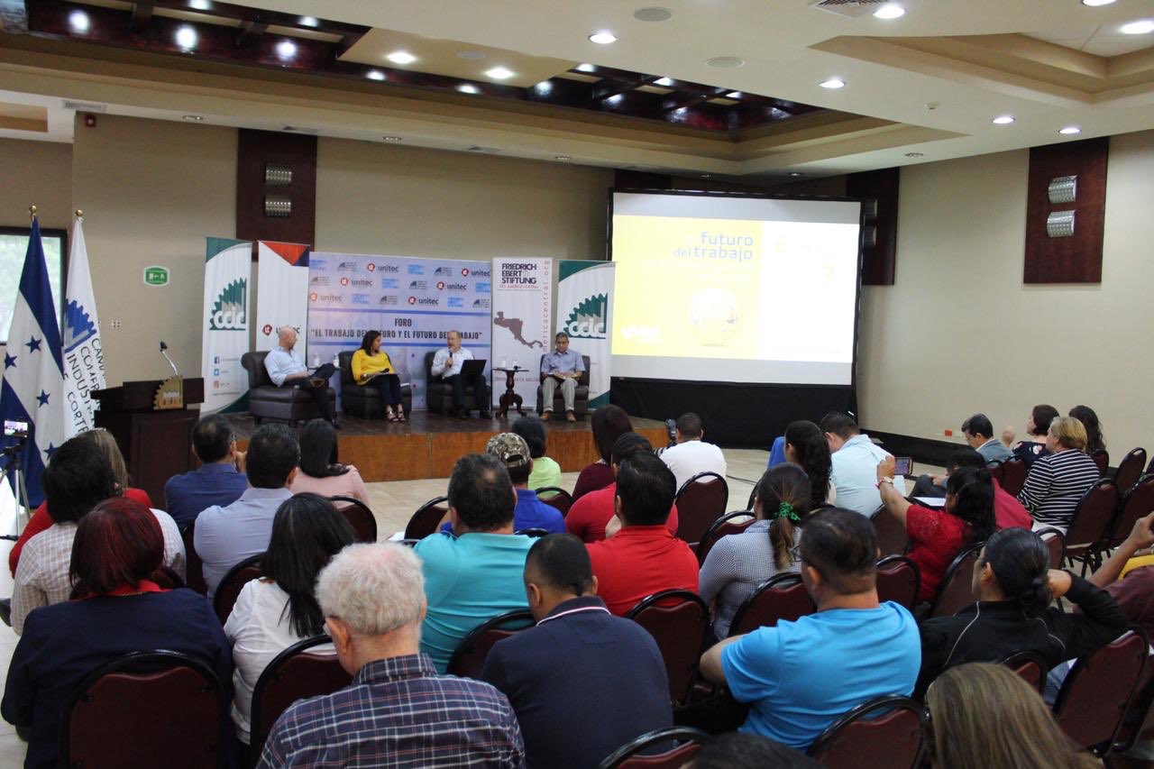 La Cámara de Comercio e Industrias de San Pedro Sula, celebró ayer, en coordinación con la Fundación Friedrich Ebert y la UNITEC un interesante foro titulado «El trabajo del futuro y el futuro del trabajo». Sus principales expositores fueron los connotados intelectuales nacionales, Dr. Hugo Noé Pino (coordinador del foro) y el Dr. Rafael del Cid.