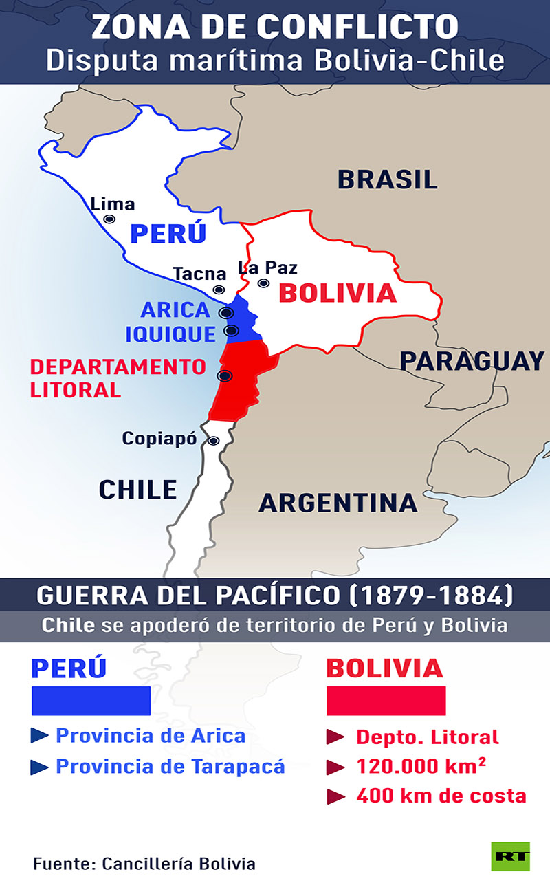 El Estado Plurinacional de Bolivia demandó a Chile ante la CIJ en 2013, como último recurso legal para solventar su problema de mediterraneidad; es decir, su falta de salida al mar, luego que perdiera una amplia extensión de su territorio tras una guerra.