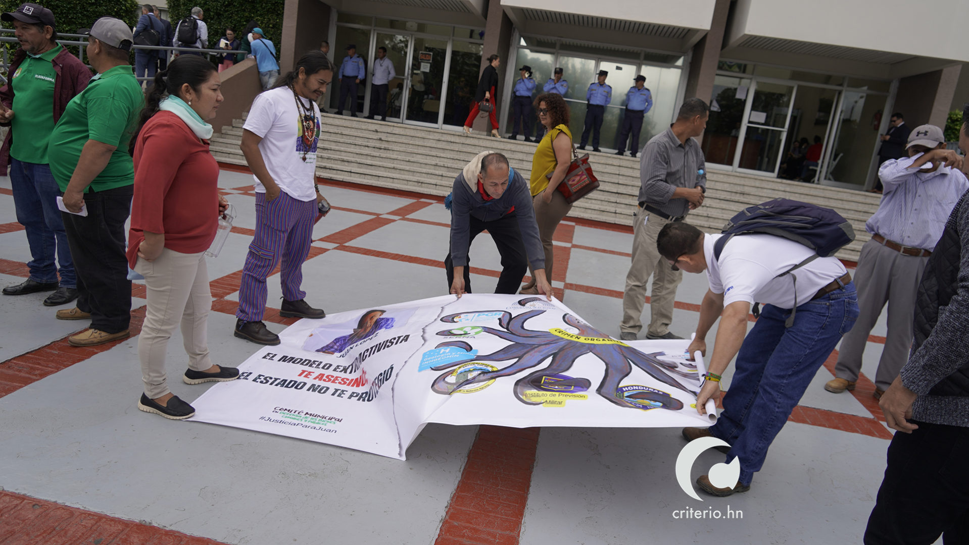 Tegucigalpa, Honduras. – Integrantes del Comité Municipal de Defensa de los Bienes Comunes y Públicos de Tocoa protestaron frente a la Corte Suprema de Justicia (CSJ) debido a la cancelación de una audiencia clave.
