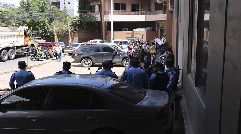Mientras se presentaba el requerimiento un fuerte grupo de policías vigilaba a los
