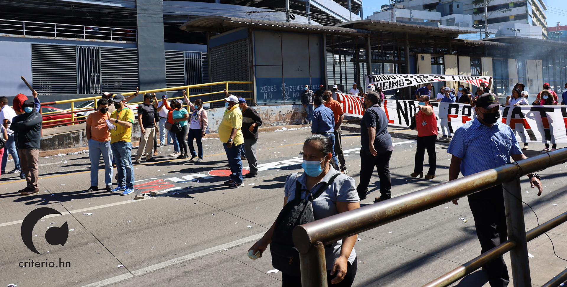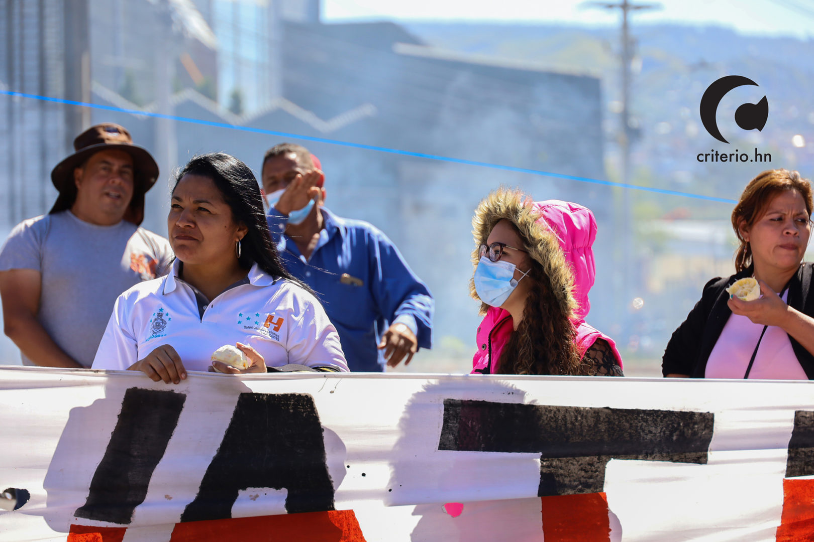 A pocos metros de la protesta de los trabajadores de la salud se desarrolló otro mitín callejero por parte de los empleados de la Empresa Nacional de Telecomunicaciones (Hondutel) que exigieron el pago atrasado de cinco meses de salario.