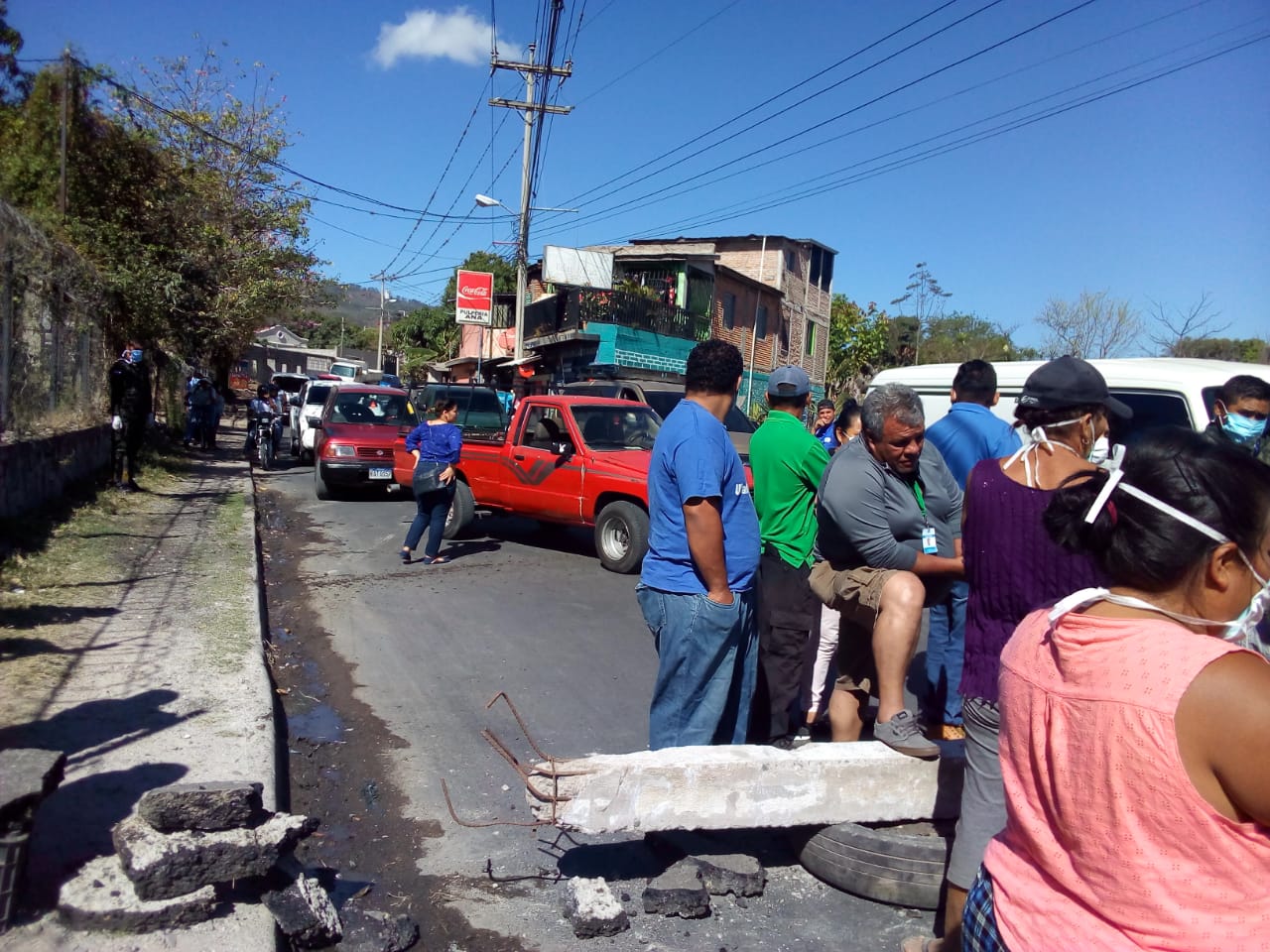 Otros pobladores cerraron la carretera a Olancho, exigen comida, la fila de vehículos es larga, el mismo sol casi a mediodía golpea otras caras, espaldas y brazos.