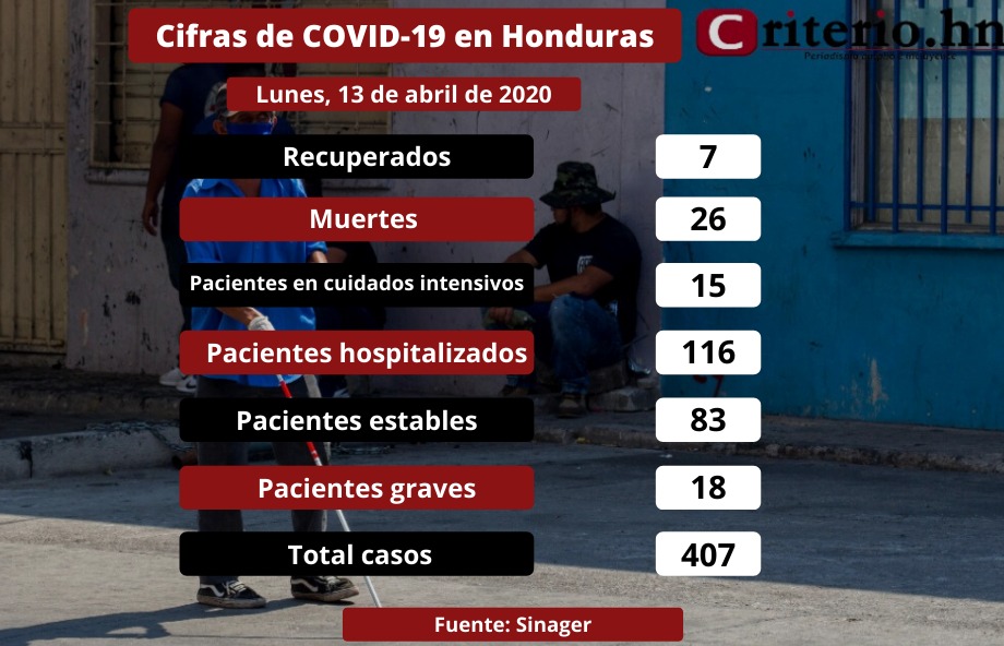 8 en Cortés, uno en Lempira y uno en Francisco Morazán, diez casos más, 407, 26 muertes y 7 recuperados, a pesar de la gravedad en la voz de Francis Contreras y su lenguaje corporal la voz del director del IHSS en San Pedro Sula, Omar Jananía dijo que en el hospital Leonardo Martínez han muerto 16 personas con sospecha de Covid-19 en el hospital Mario Catarino Rivas 17 y 5 en el Seguro Social.