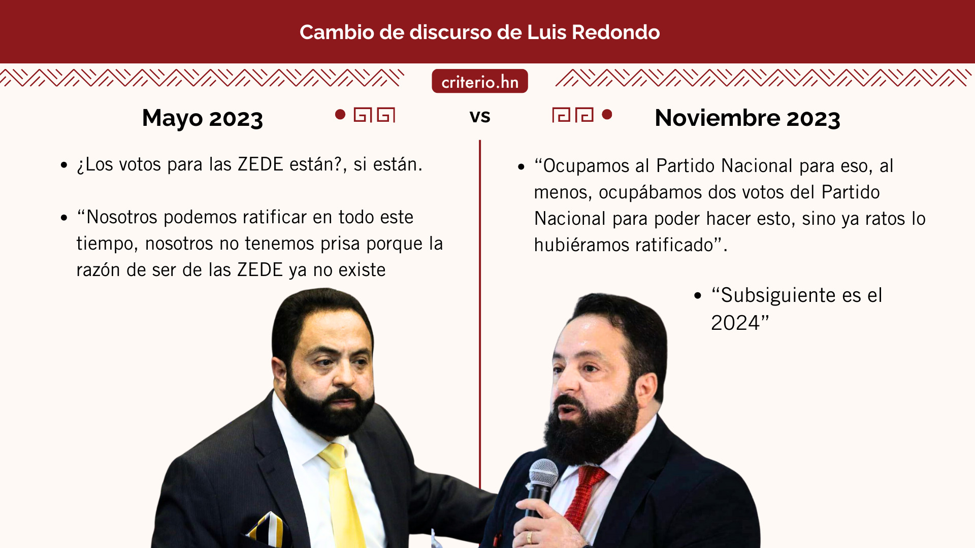 En una conversación con Criterio.hn, el 22 de septiembre de 2023, el diputado nacionalista Erasmo Portillo expresó que su bancada acordó acompañar la ratificación en la segunda legislatura “siempre y cuando el gobierno y poder Legislativo plantearan una salida o un esquema alterno a la ZEDE”.