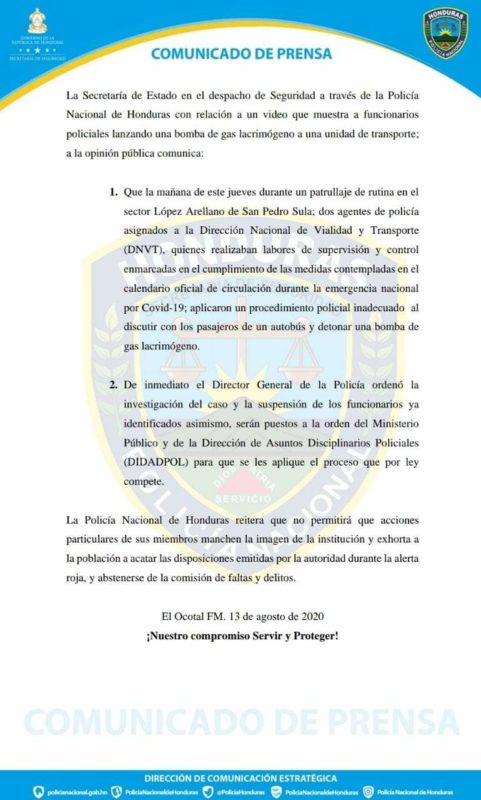 Las tres acciones generaron repudio de la población a nivel de redes sociales, la gota que derramó el vaso fue el caso de Choloma, en la que policías de tránsito lanzaron una bomba lacrimógena a un bus lleno de empleados y empleadas de una maquila, generando caos y daños a la salud de estas personas.