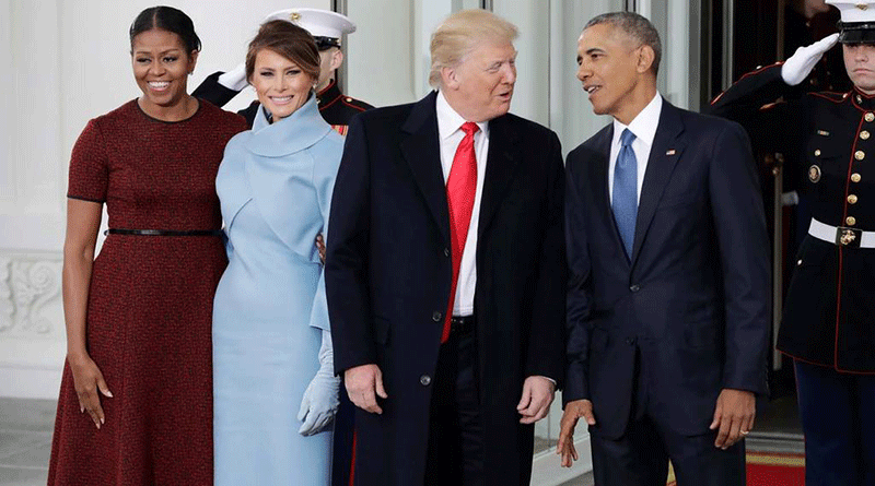 El presidente electo de EE.UU., Donald Trump, entró horas antes en la Casa Blanca junto con su esposa, Melania, para reunirse con Barack y Michelle Obama antes de partir todos al Capitolio para la ceremonia de transmisión de mando, reportó la agencia AFP.