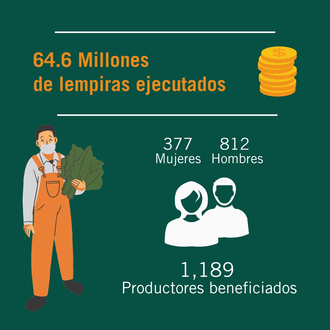 De acuerdo al portal de transparencia de la Secretaría de Finanzas, del total de los recursos, apenas 36.6 millones de lempiras fueron asignados para los productores a través de la asistencia en apoyo en diferentes líneas de producción como hortalizas, granos básicos, ganado, frutales, capacitaciones, entrega de activos productivos, insumos que se requieren para generar producción y asistencia técnica.