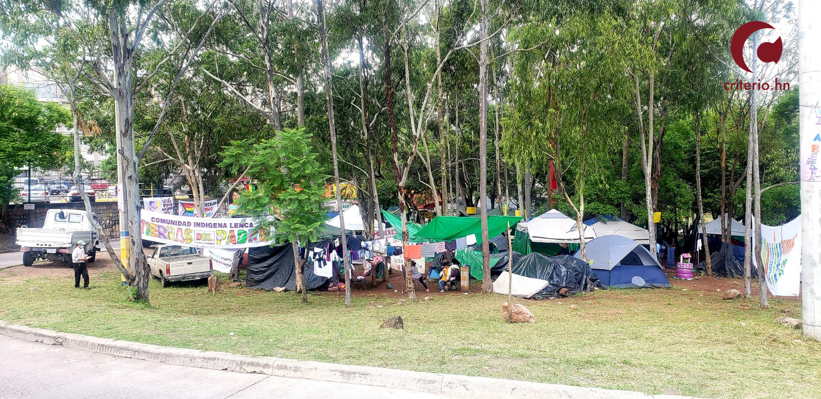 En las afueras de la Corte Suprema de Justicia (CSJ), desde las 9:00 de la mañana de este cuatro de abril, ubicaron sus carpas el Consejo Cívico de Organizaciones Populares e Indígenas de Honduras (Copinh), la Red Nacional de Defensoras de Derechos Humanos y la Organización Fraternal Negra Hondureña (Ofraneh) y población en general que admiró la gallardía de Berta Cáceres.
