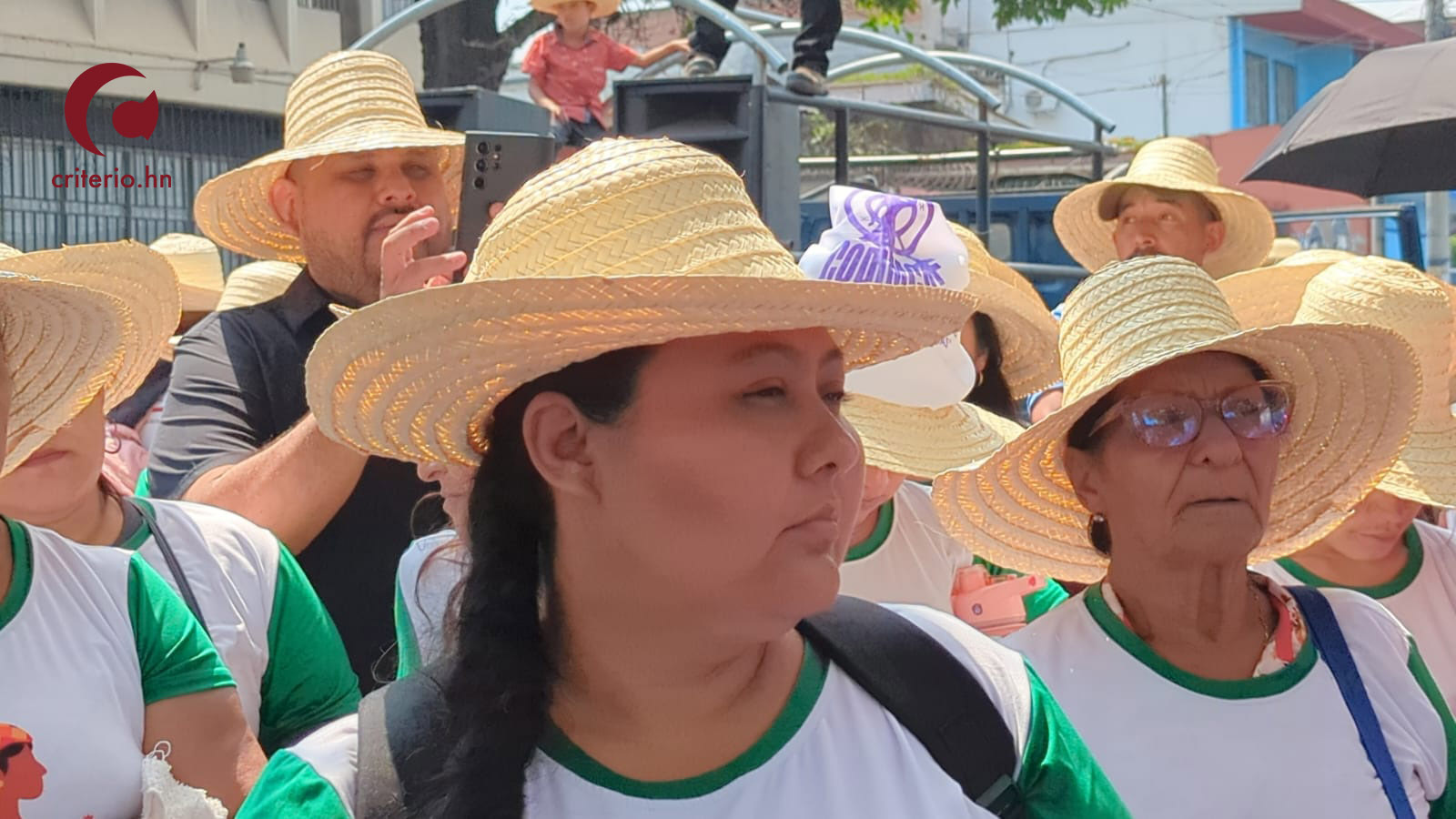 Foto Portada: Las y los campesinos caminan hacia casa presidencial para presentar su carta de reclamos. Foto: Jorge Burgos/Criterio.hn
