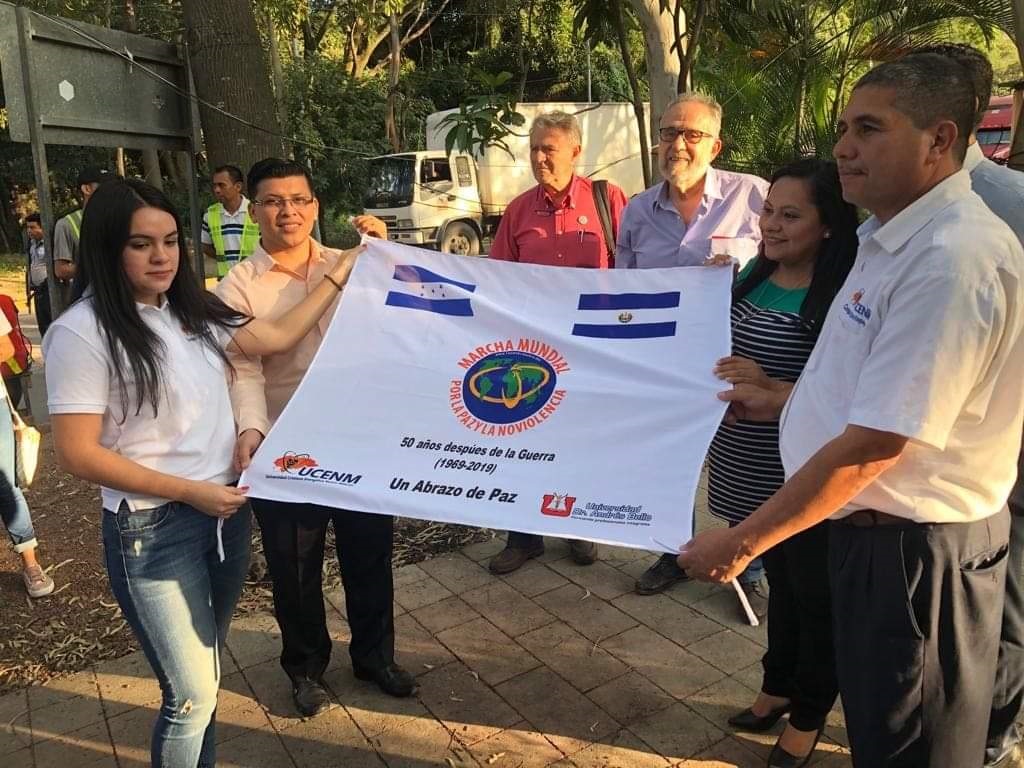 En el punto fronterizo de El Poy, una delegación de la Universidad Andrés Bello de Chalatenango, El Salvador, y otra de la Universidad Nuevo Milenio de Ocotepeque, Honduras; en emotivo encuentro se abrazaron y manifestaron su compromiso de trabajar por la paz permanente entre ambos países. Asimismo, recordaron que la guerra del 69, que tanto dolor y sufrimiento causó entre los dos pueblos hermanos, fue alentada por intereses de grupos económicos en el poder, en ambos países. En homenaje a las víctimas, también coincidieron en el llamado a solucionar cualquier conflicto que pueda presentarse, por la vía del diálogo y de solicitar la colaboración de la ONU si fuere necesario. Por la noche los miembros del EB de la Marcha que pudo ingresar a Honduras compartieron con los estudiantes universitarios, los objetivos de la marcha y las experiencias acumuladas en este trabajo por construir una cultura de paz mundial.