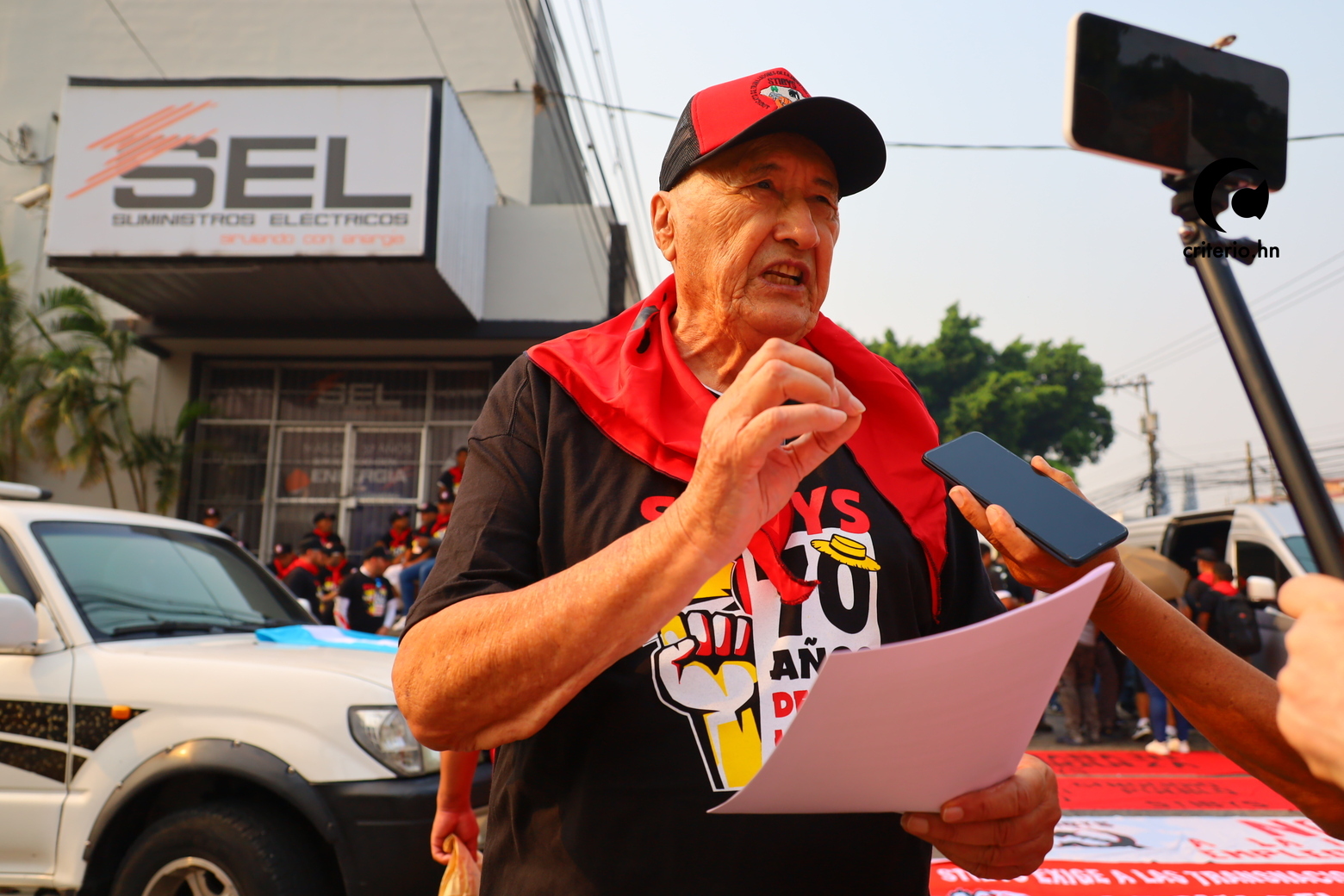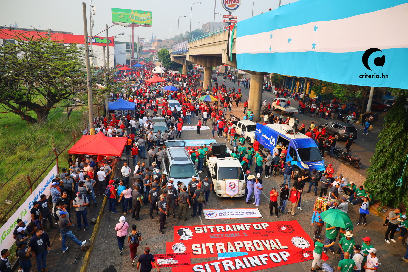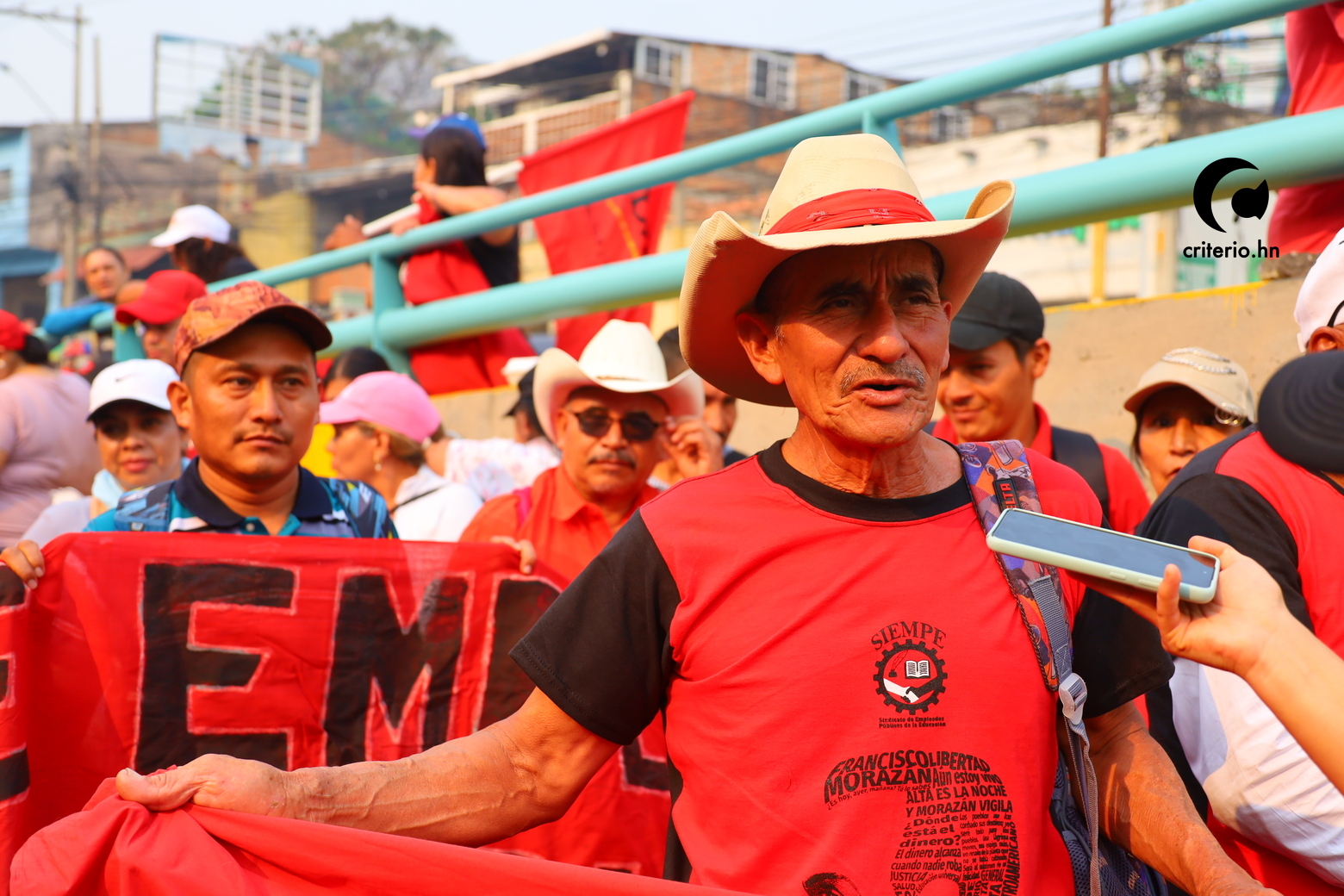 Durante el transcurso de la movilización alrededor de las 10 am, Criterio.hn conversó con Omar Pavón, un hombre de 60 años que montó su puesto estratégicamente por donde pasaba la movilización.