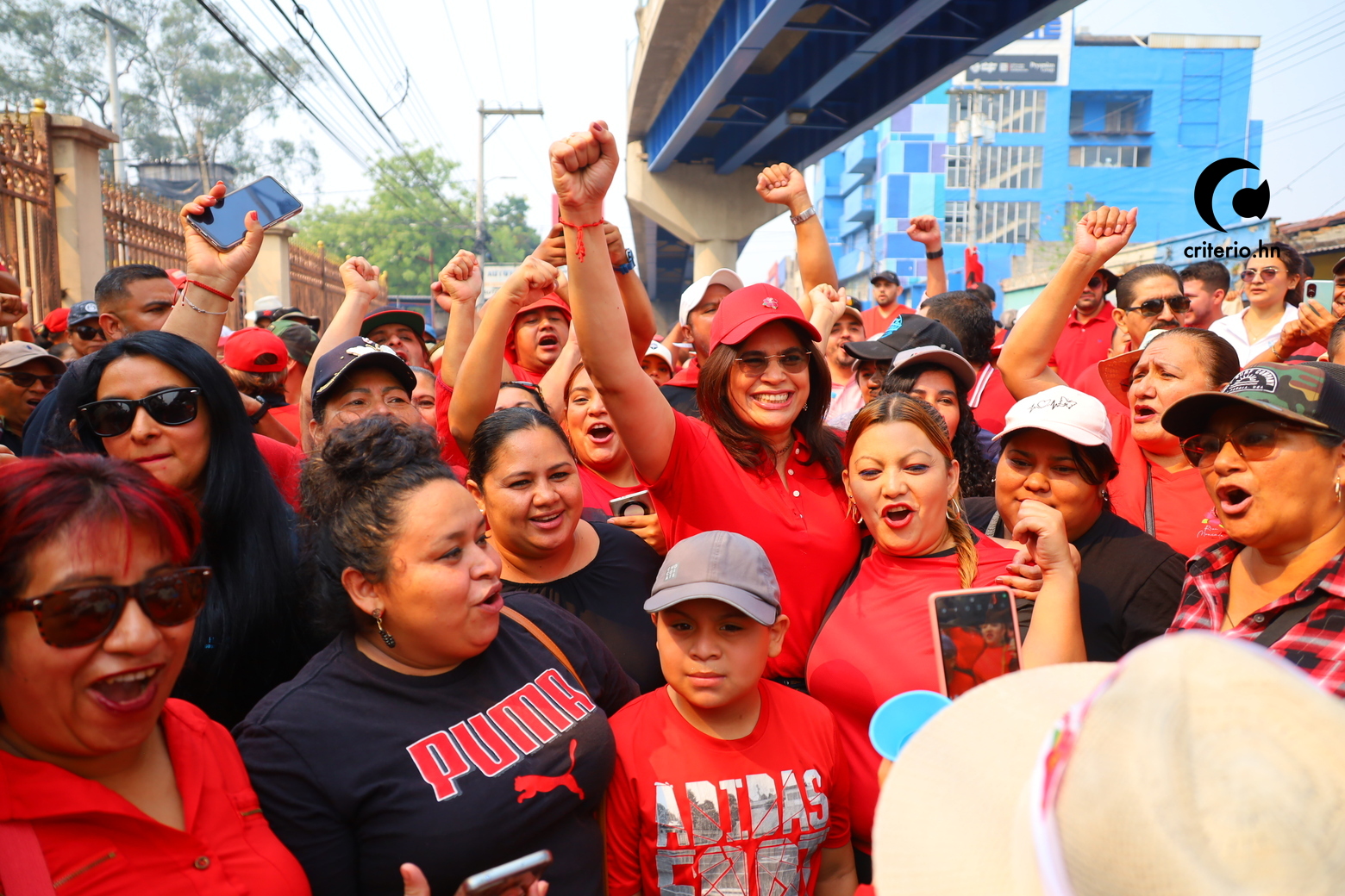 Después de un recorrido sin incidentes significativos, el grupo llegó al parque central a las 11:20, y poco después se vio la llegada del asesor presidencial y coordinador de Libre, Manuel Zelaya, quien saludó a los simpatizantes desde un Jeep blanco.