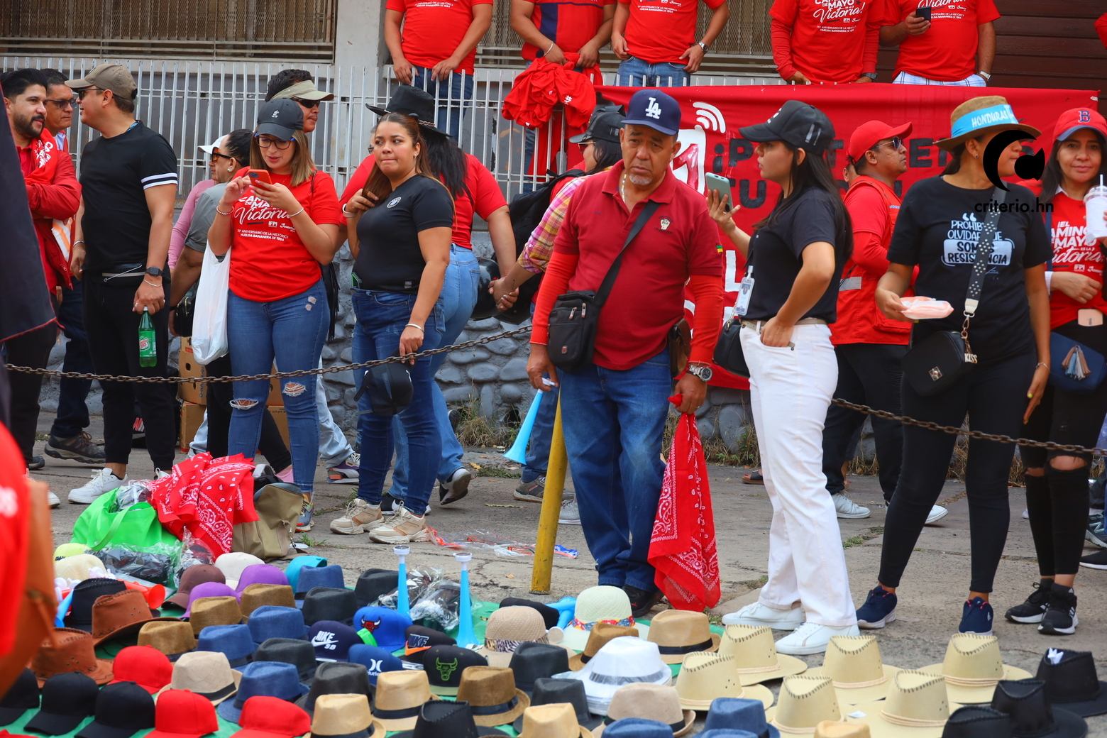 Los sindicalistas y obreros comenzaron a preparar sus banderas y pancartas con las demandas pertinentes, mientras que a los empleados de instituciones públicas se les proporcionaban camisetas e indumentaria acorde con la institución, con simbolismo asociado al partido oficialista, Libertad y Refundación (Libre).