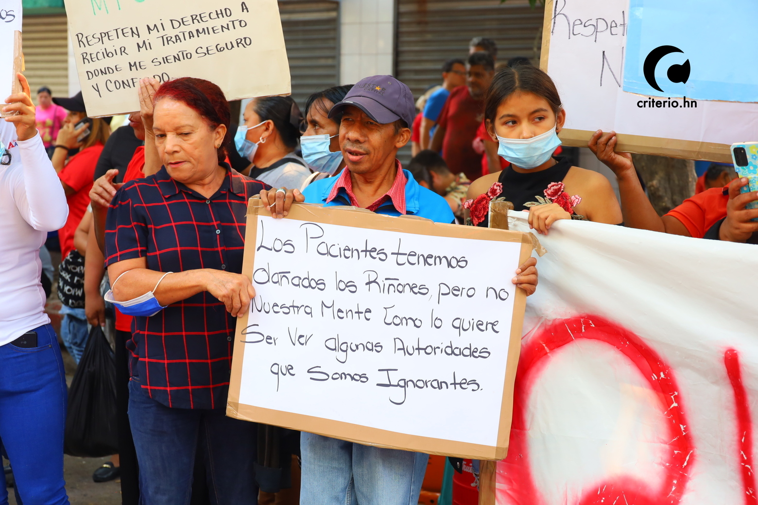 En la movilización hubo diversos grupos con múltiples exigencias, entre ellos, los pacientes renales quienes hicieron un llamado para que se cumpla la Ley Nacional Renal y solicitaron ser tratados en los Centros de Diálisis de Honduras en lugar de en los hospitales públicos.