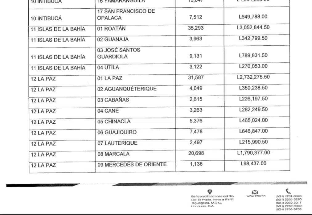 Mientras que, en municipios como Jacaleapa en departamento de El Paraíso, el techo es de 304,305.00 lempiras. El límite más bajo lo tiene el municipio de Mercedes de Oriente, La Paz con 98,437.00 lempiras.