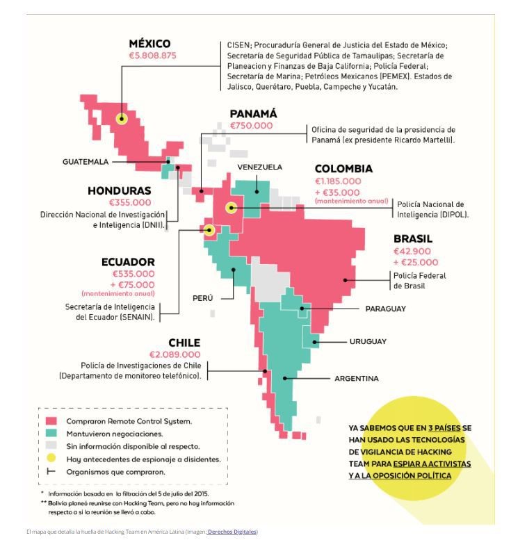 La tecnología de Hacking Team, era vendida para que los policías pudieran rastrear criminales y terroristas, por eso ellos analizaban que sus clientes fueran entes del Gobierno especializados en estas áreas de investigación, pero a medida que se dio el uso de estas herramientas, ellos mismos descubrieron que se utilizaban por los países a los que le vendieron para intervenir disidentes u opositores políticos en América latina. “Si le das malware de vigilancia a los policías que desaparecen estudiantes, prácticamente se lo estás dando también al crimen organizado.”