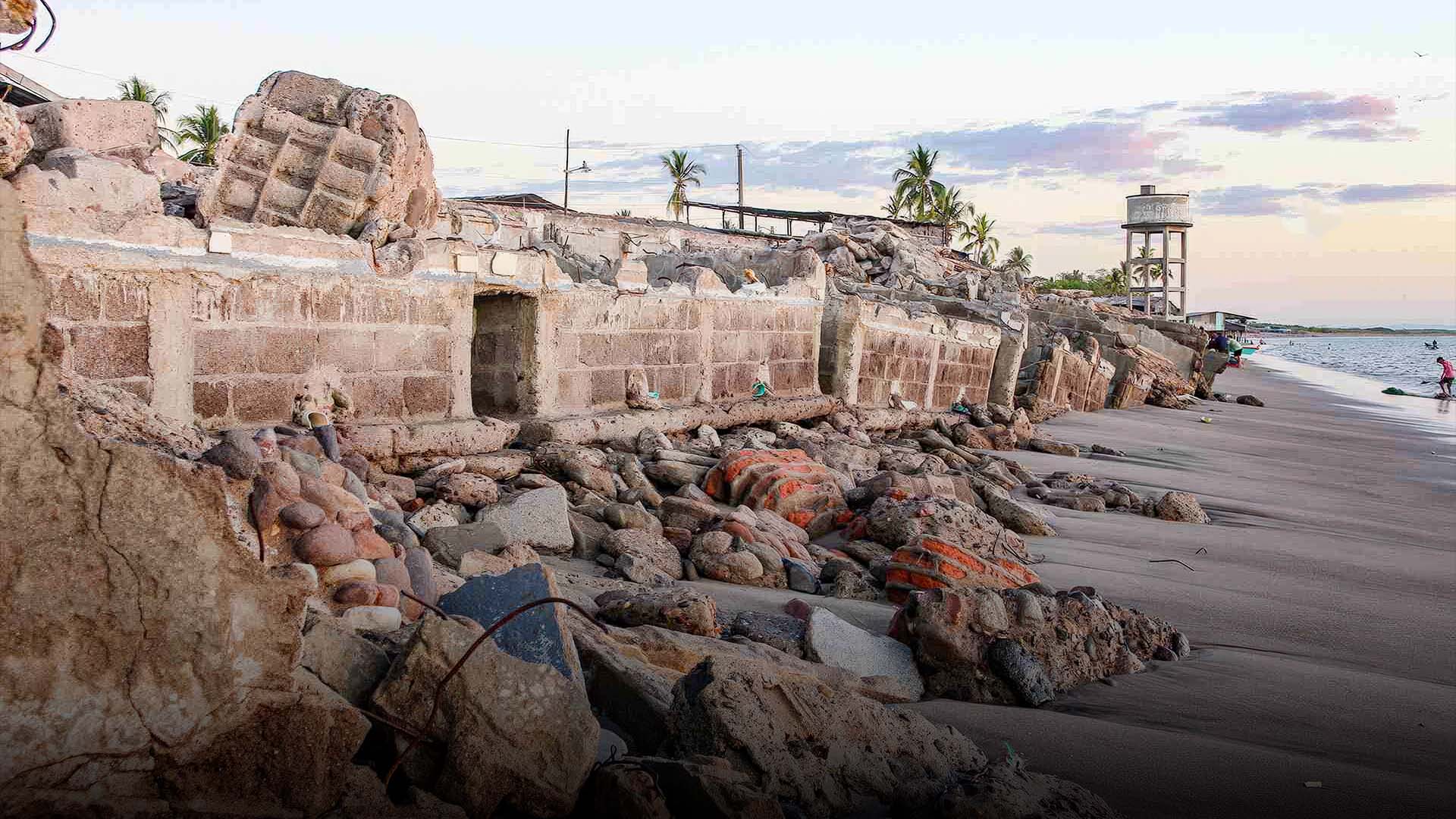 Me parece muy extraño que, en esta playa, a diferencia de la anterior, hay pocos escombros. “¿Y aquí por qué no hay tantos escombros?” le pregunto; se le dibuja una sonrisa resignada y señala al mar: “Allí están, sumergidas en el mar y bajo la arena”. Dos líneas de casas donde al menos residían unas 200 familias fueron arrasadas. “Mire, solo esos restos quedaron visibles, este era el hotel de una cuñada mía” dice. Y entre tanto hablar y hablar, accede a la entrevista. “En el 2016 la alcaldía compró un terreno y el gobierno nos construyó casas nuevas a todos”, cuenta.