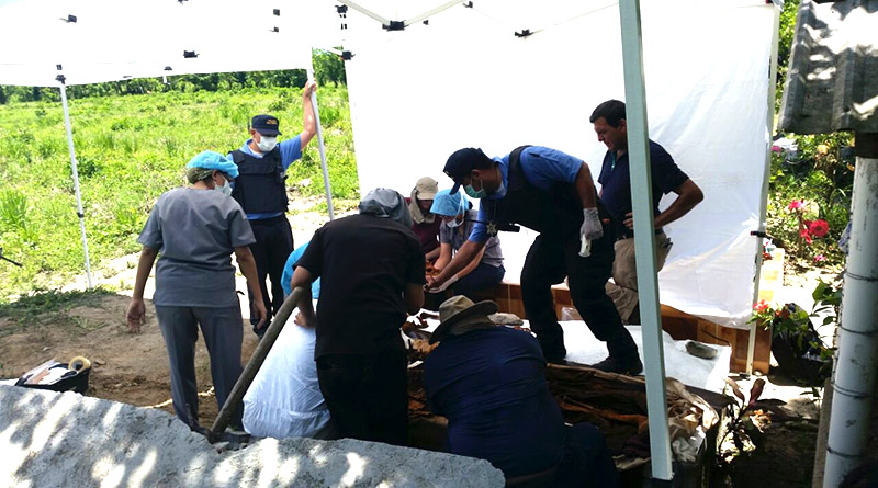 Tegucigalpa.- Con el apoyo de la Sección de Asuntos Internacionales contra el Narcotráfico y Aplicación de la Ley de la Embajada de los Estados Unidos (INL), así como Medicina Forense del Ministerio Público, como también un grupo de Antropólogos Forenses de Guatemala, realizan la exhumación de siete cuerpos que se encuentran en cementerios de Tocoa y Trujillo.