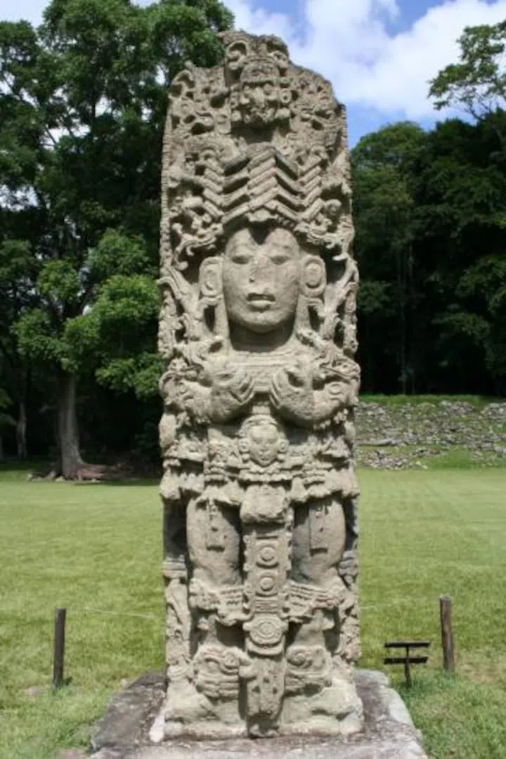 Copán Ruinas alberga uno de los conjuntos escultóricos más impresionantes del mundo maya. En la Gran Plaza (también llamada Plaza del Sol por los arqueoastrónomos), se erigen varias estelas, de las cuales algunas fueron comisionadas por el gobernante Uaxaklajuun Ub’aah K’awiil, conocido como 18 Conejo, quien gobernó entre los años 695 y 738 d.C.