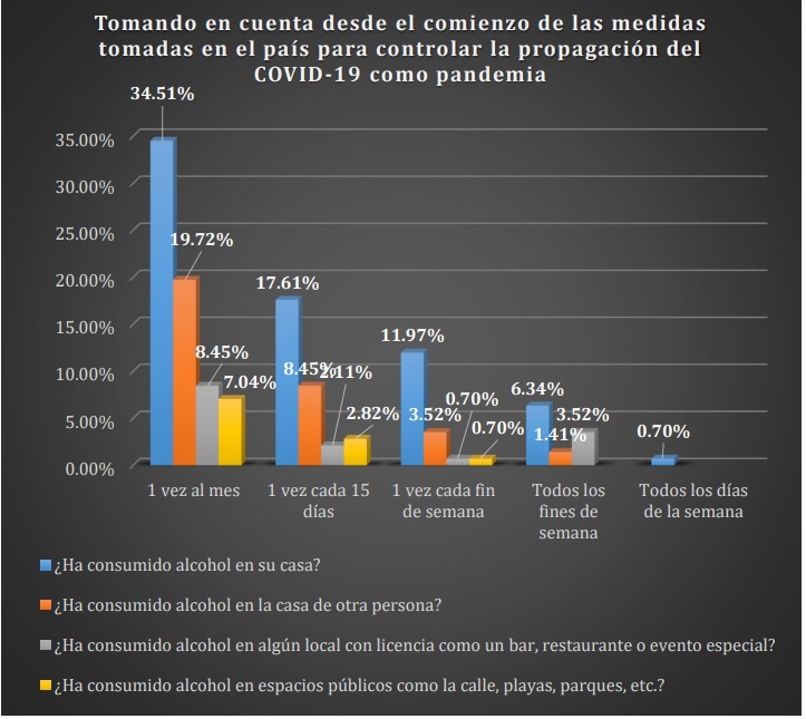 Una de las preocupaciones es que la población hondureña acuda al consumo de alcohol durante este tiempo de cuarentena y bajo el estrés y preocupaciones que ello implica, destaca el informe: Consumo de Alcohol durante el aislamiento social por COVID- 19 elaborado por la doctora a cargo de la investigación, Sandy Gabriela Orellana Álvarez.