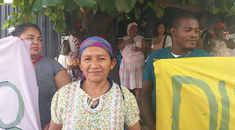 Miriam Miranda, representante de la Organización Fraternal Negra (OFRANEH), manifestó que las como la regional de las Naciones Unidas está trabajando en la elaboración de esa nueva ley, por esa razón se han venido a este plantón para exigir que se les tome en cuenta a los pueblos originarios.