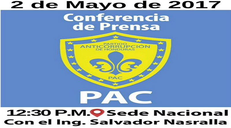 La Conferencia será hoy a las 12:30 del mediodía en la sede del PAC en la colonia Miramontes de Tegucigalpa.