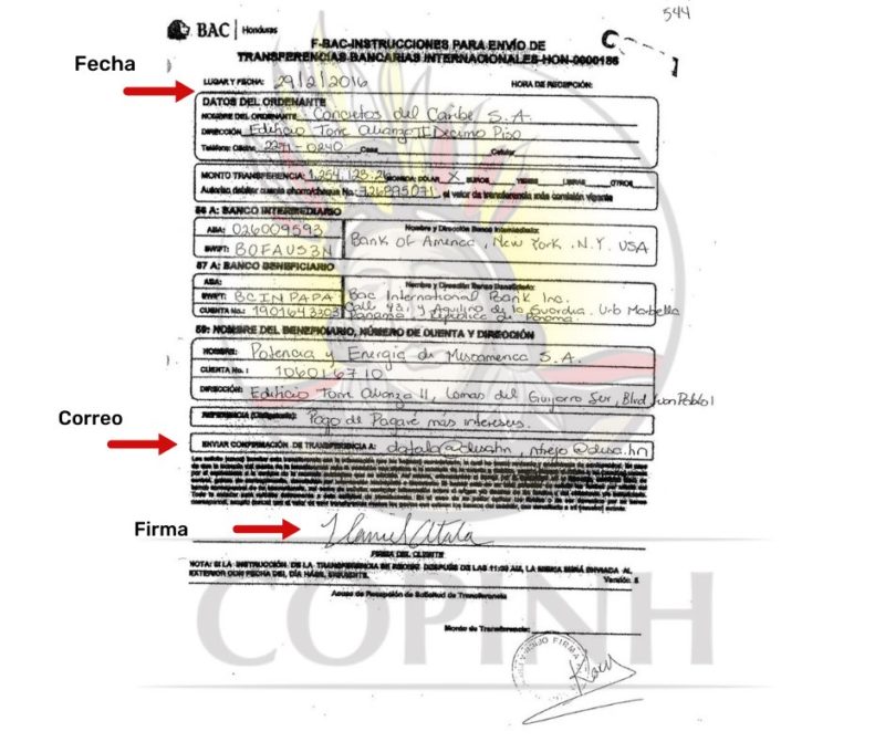 Víctor Fernández expresó que este medio de prueba es importante porque «relaciona movimientos financieros de la empresa con una acción material directa de dos sujetos importantes en la ejecución del crimen de Bertita, en este caso Roberto David Castillo y Douglas Geovanny Bustillo. Pero es más importante que la autorización de esta transacción financiera millonaria la hace el señor Daniel Atala Midence».