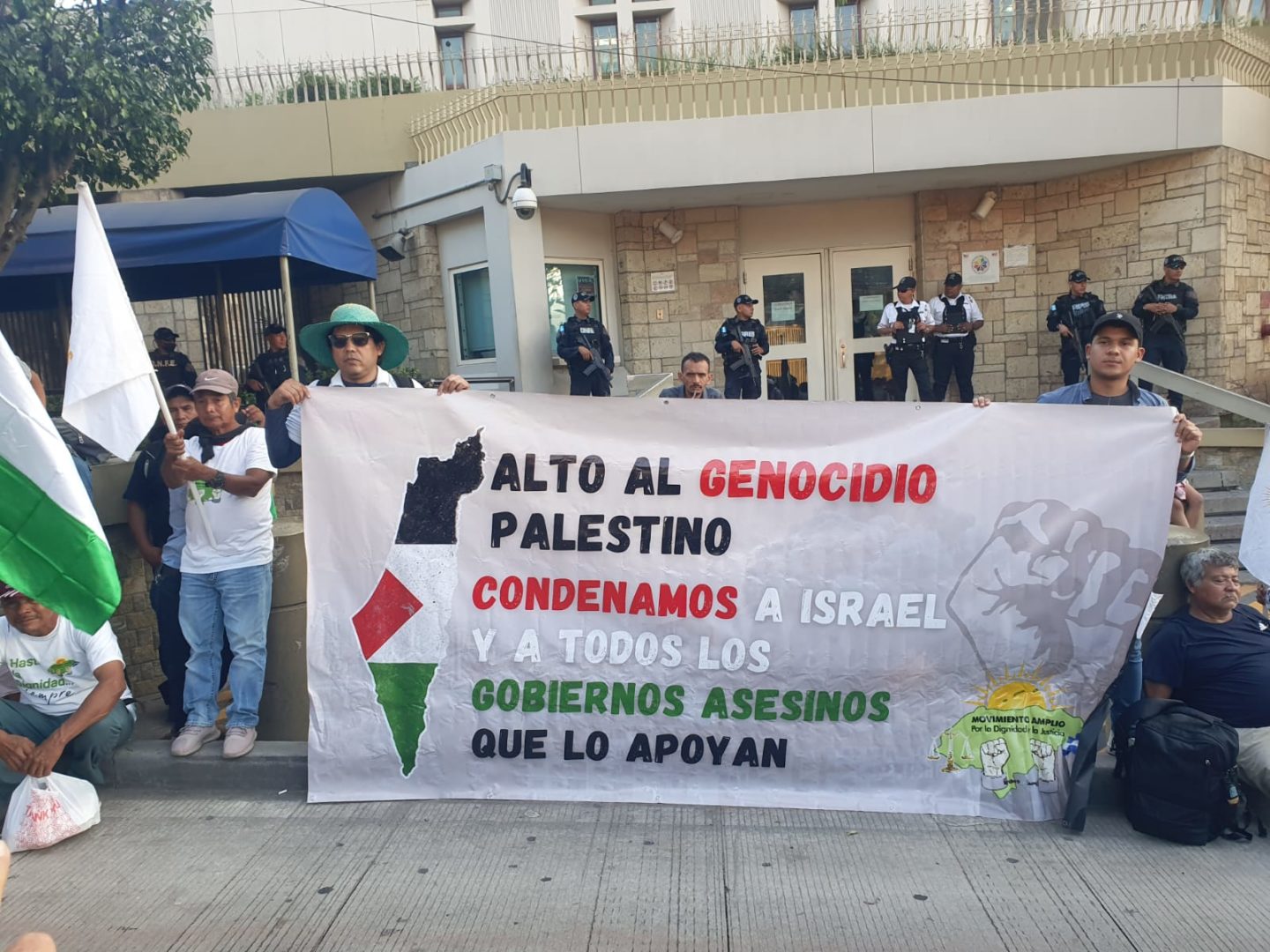 Durante el mitin frente a la Embajada de Estados Unidos en Honduras, el movimiento popular y social hondureño se solidarizó con el pueblo palestino y condenaron el genocidio en su contra por parte del gobierno sionista de Israel en alianza con los gobiernos de Estados Unidos y Canadá.