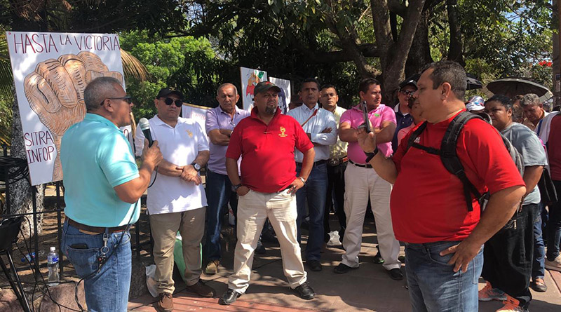 El presidente del Sindicato de Trabajadores del Infop, Esteban Díaz, manifestó que la protesta es para evitar los despidos masivos anunciados por el gobierno y para que “no se hagan negocios con la banca privada porque si la banca privada presta 700 millones, va obtener 70 millones anuales de intereses”.