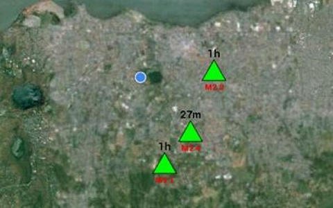 Los dos primeros movimientos de 2,8 y 2,1 grados en la escala de Richter ocurridos en la mañana de este martes a 7,1 y 5 km de profundidad en los alrededores de la loma de Tiscapa, norte de Managua, señaló el Instituto Nicaragüense de Estudios Territoriales (Ineter).