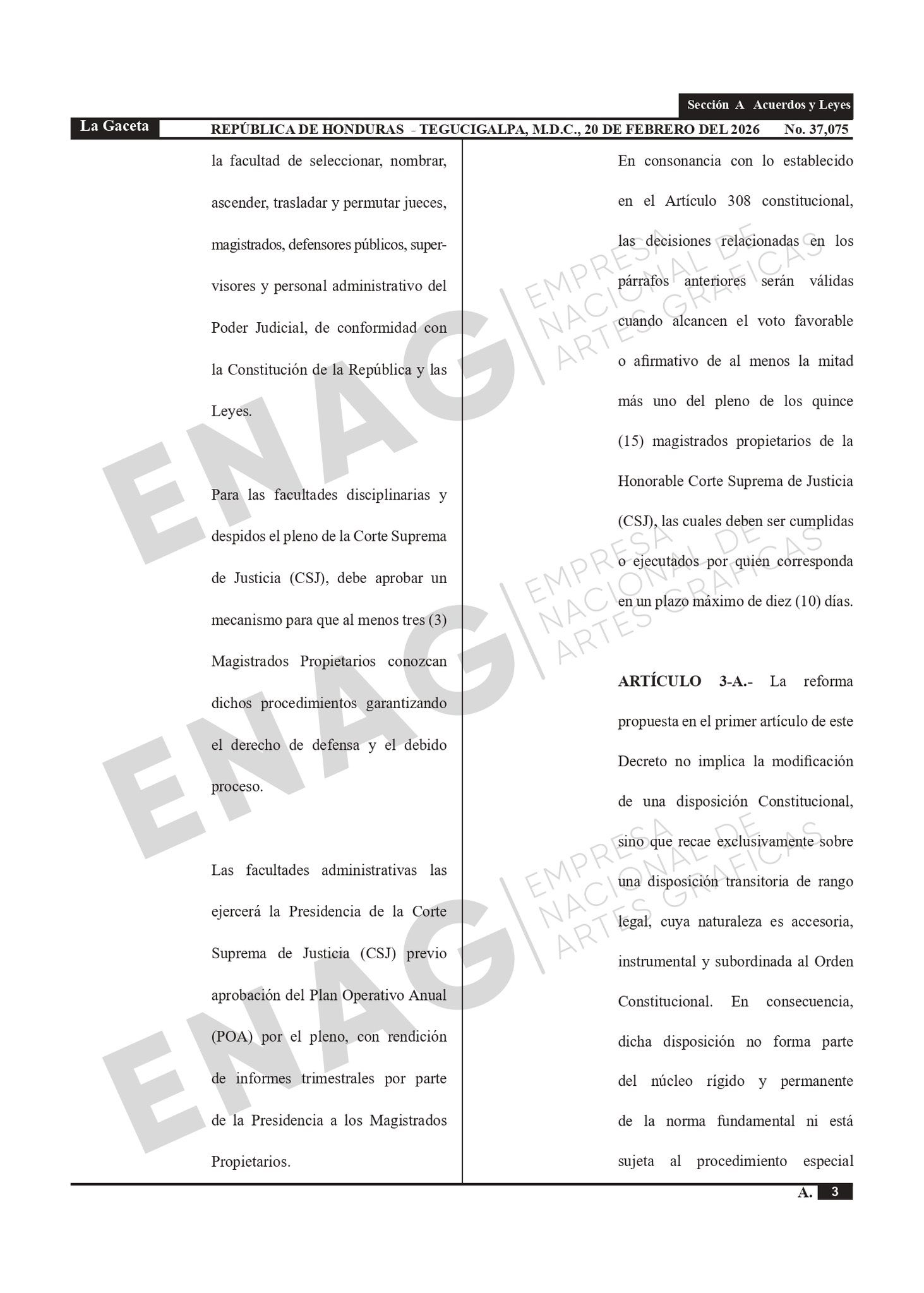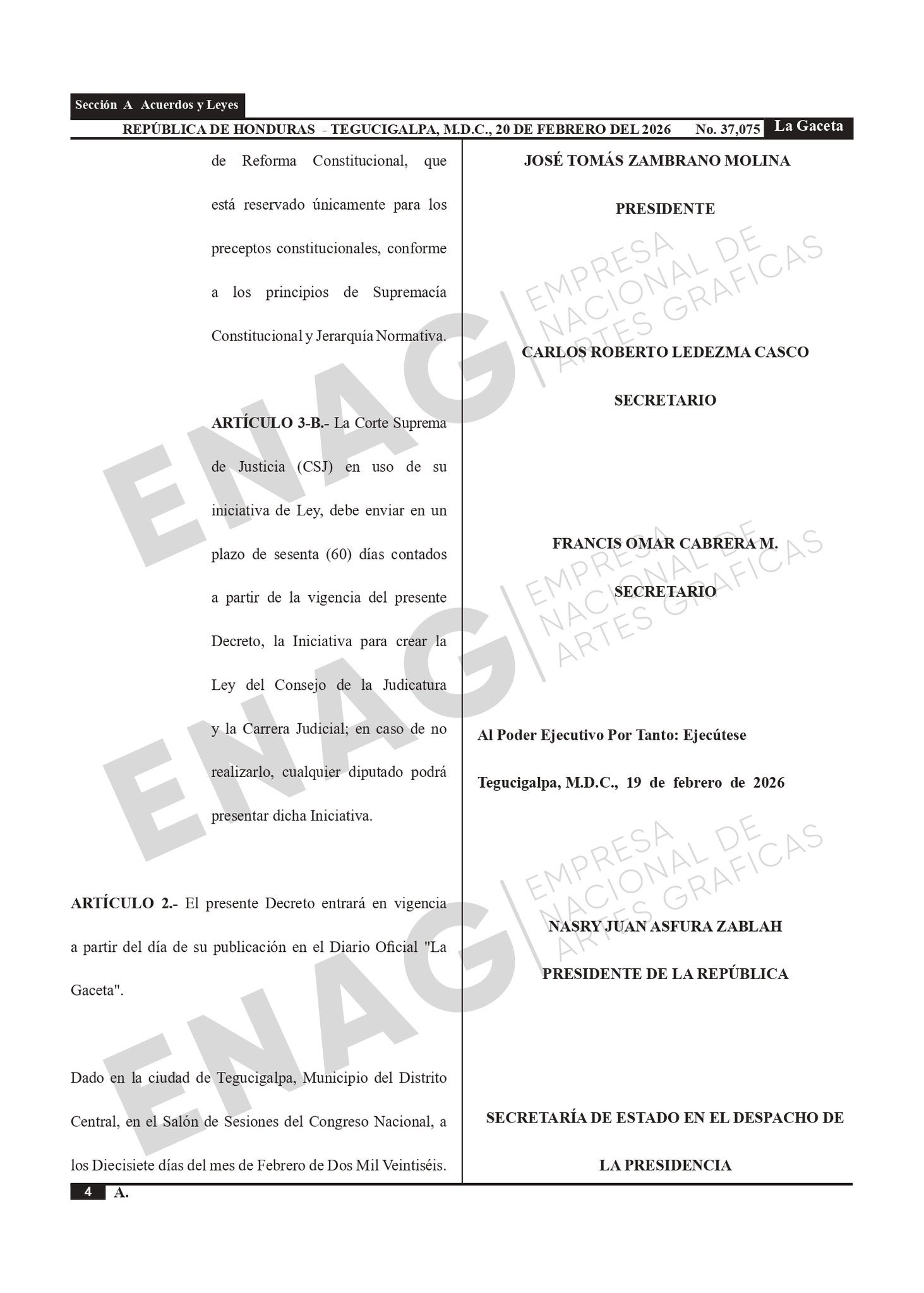 Tegucigalpa, Honduras. – El Congreso Nacional llevó adelante un tenso y apresurado debate para reformar el artículo 3 del Decreto Legislativo 282-2010 y quitar a la presidenta de la Corte Suprema, Rebeca Ráquel Obando, las facultades administrativas que ejerce, aprobando finalmente una enmienda que juristas califican como una reforma constitucional encubierta y contraria a la separación de poderes.