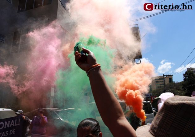 Tegucigalpa. –Su punto de encuentro es la Iglesia La Guadalupe. Se van acercando con sus camisas moradas, en la que resalta Gladys Lanza, otras llevan entre letras rojas el eslogan somos defensoras y algunas portan sus pañuelos verdes, exigiendo la despenalización del aborto, y así, expuestas ante el inclemente sol particular del verano, gritan: Juan Orlando, Juan Orlando ¡a las mujeres nos están matando!