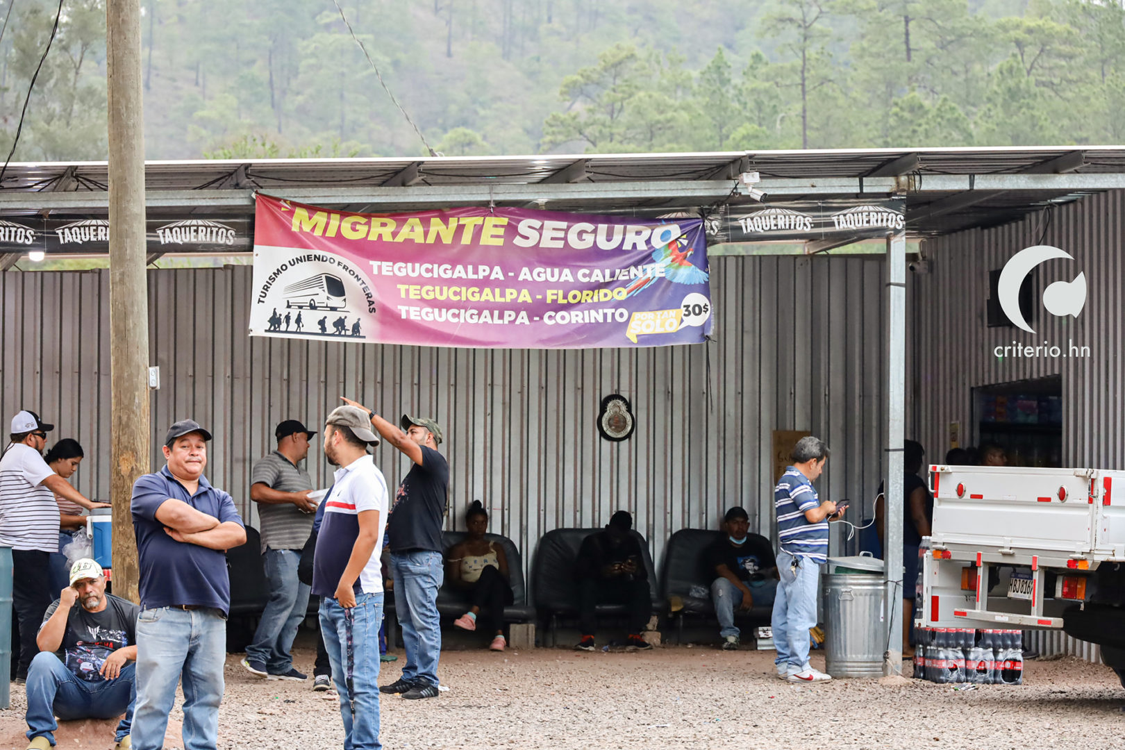 La terminal está hecha con tablas de madera de orilla y lámina, tiene rótulos impresos con la leyenda “migrante seguro”, por 30 dólares por cabeza los trasladan a las fronteras de Agua Caliente, El Florido o Corinto en un viaje directo por donde ingresarán a Guatemala para luego seguir a México, dejando atrás a Honduras.