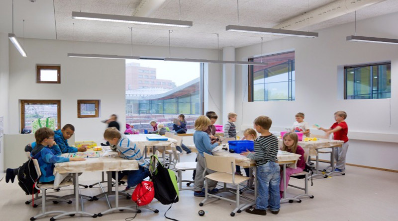 «Los niños tienen diferentes formas de aprender», agrega, por lo que los espacios versátiles «hacen posible formar distintos equipos, basándose en la forma en que los niños aprenden, prefieren trabajar y pasan su tiempo de estudio».