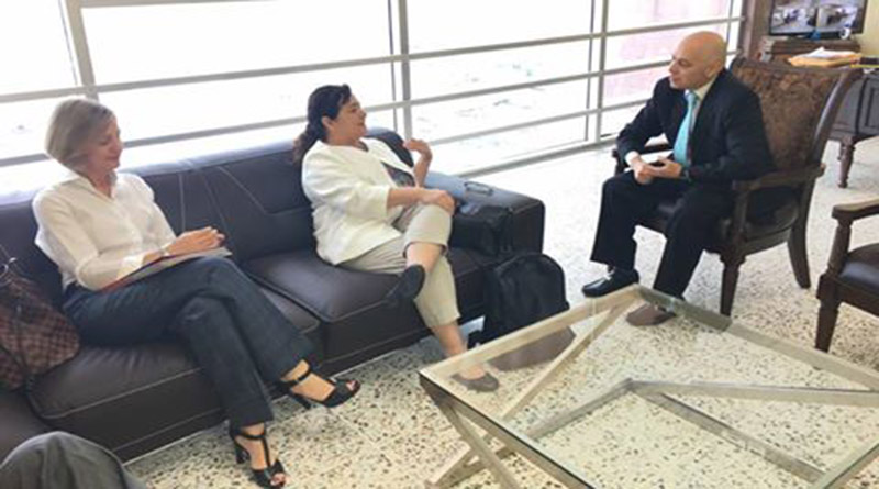 Tegucigalpa. El Fiscal General de la República, Oscar Fernando Chinchilla y la Secretaria de Seguridad Multidimensional de la Organización de los Estados Americano (OEA), Claudia Paz y Paz sostienen una jornada de trabajo relativa a los temas de seguridad pública en el país.