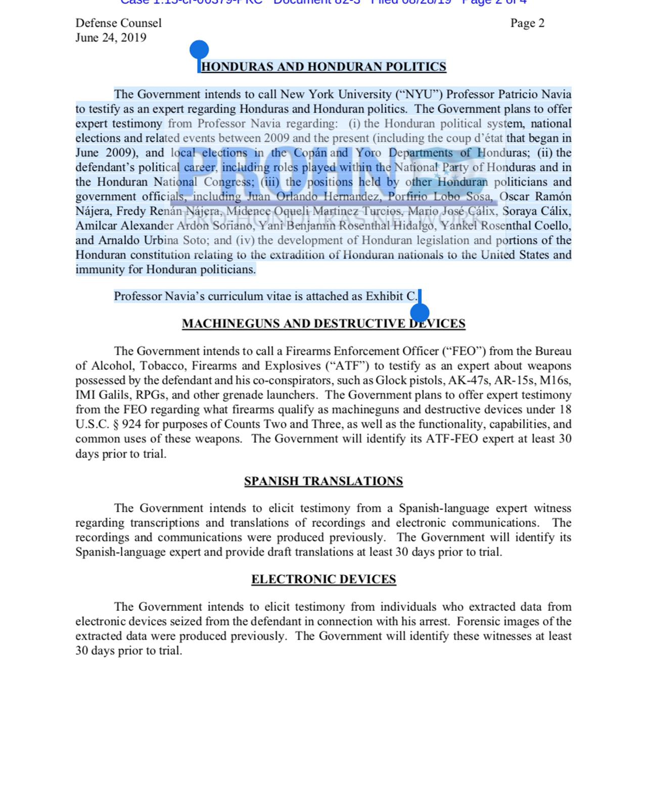 El día de hoy la fiscalía para el Distrito Sur de New York, presentó nueva documentación relacionada con el caso de Juan Antonio Hernández Alvarado, en la que ratifican la complicidad y el uso de poder político en el país para facilitar el tráfico de drogas por medio de altos cargos obtenidos a través Partido Nacional de Honduras.