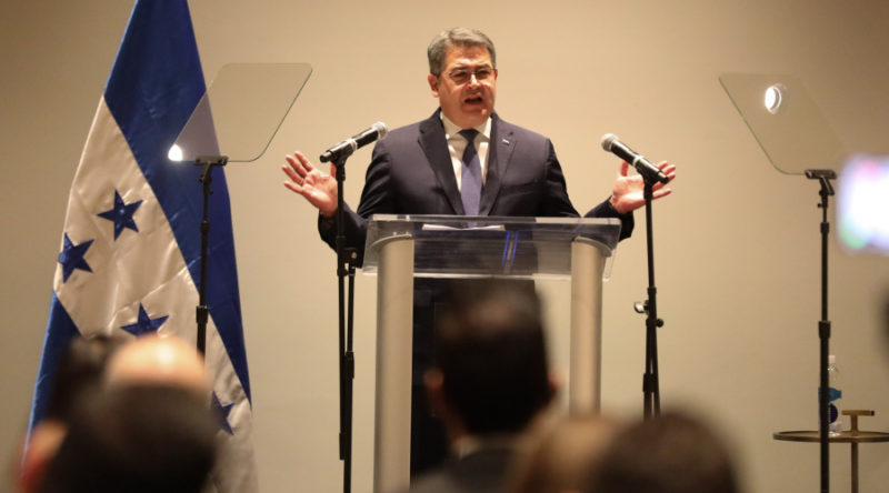 Con letreros y afiches en mano, uno de los cuales leía: «JOH hizo historia, 8 años traficando cocaína para los americanos», los hondureños dieron voz a consignas manifestando su desprecio por la gestión de Hernández, según se observó y escuchó durante la transmisión de Pro-Honduras Network, que realizó cobertura del evento.