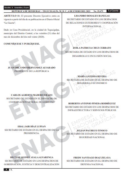 La aprobación se ha hecho mediante el PCM-138-2020 de fecha 21 de diciembre del año recién pasado y publicado en la gaceta numero 35,479 con fecha 6 de enero de 2021.