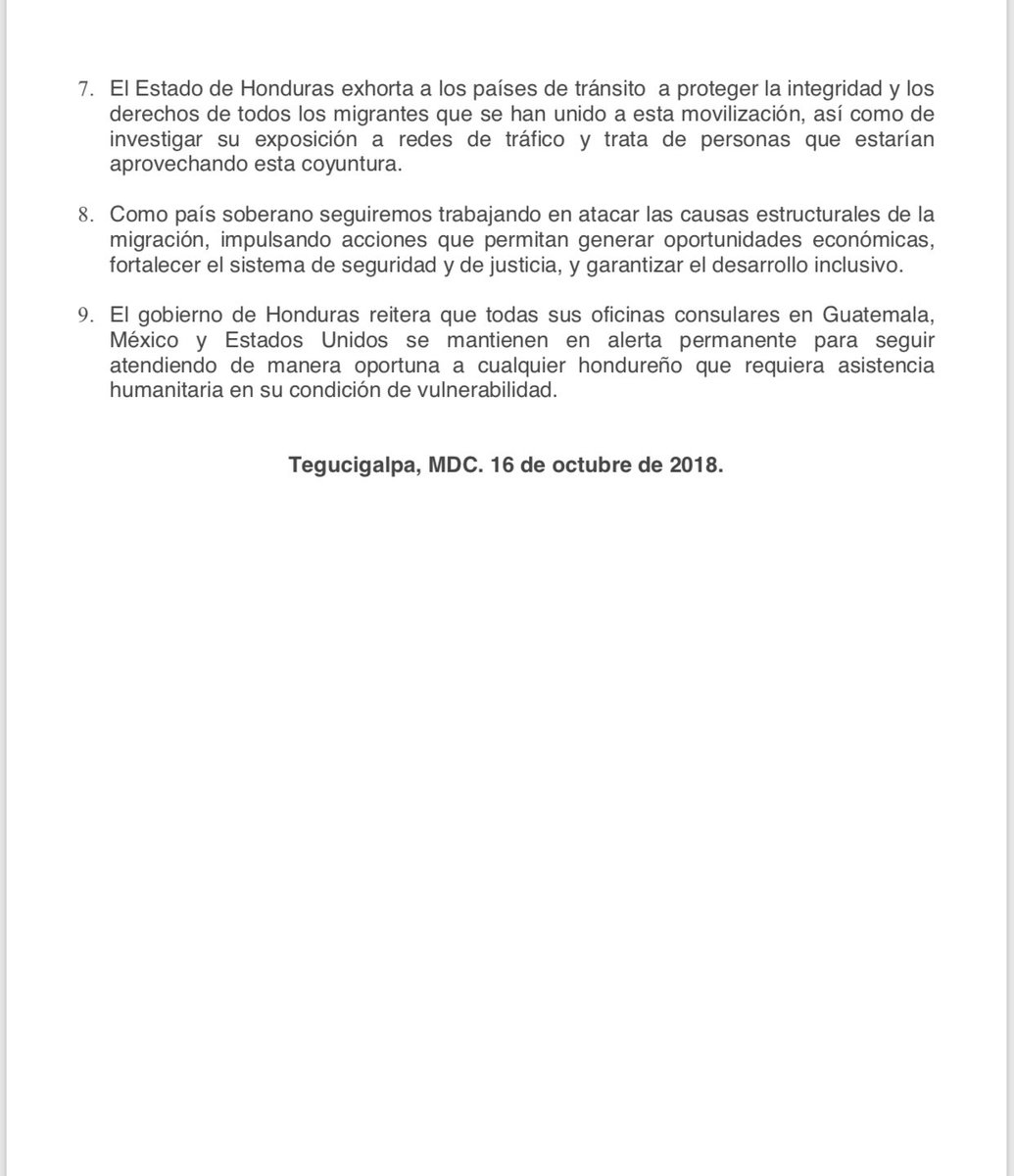 Tegucigalpa.-Mediante un nuevo comunicado el gobierno de Honduras aseveró esta tarde que la caravana de migrantes que va rumbo a México y Estados Unidos, ha sido organizada por un movimiento que “a todas luces es político y que busca alterar la gobernabilidad, estabilidad y la paz de nuestros países”.