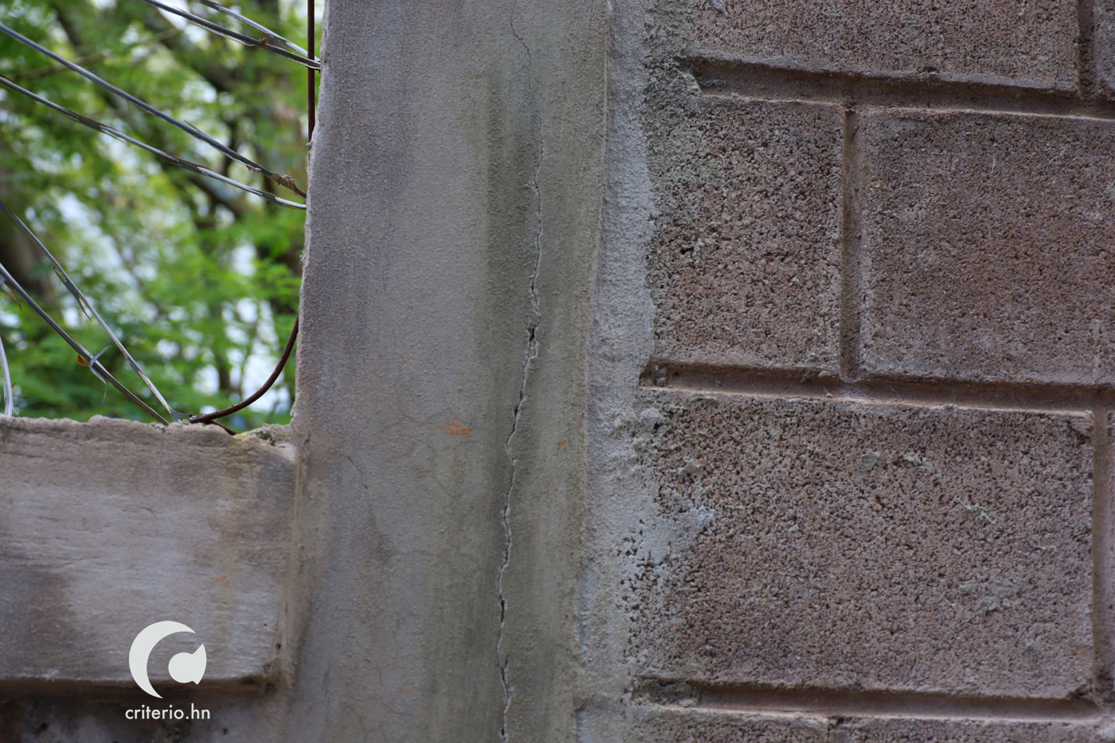 Esta obra, inscrita en uno de los cuatro contratos registrados en HonduCompras, adjudicados a Ingeniería de Construcción Vial S. de R.L. (Incovia) detalla la construcción de un cerco perimetral con un costo estipulado de 399,526.14 lempiras. Durante la inspección, se constató que el muro perimetral fue construido, pero presenta evidentes fallas. Se observaron grietas y la ausencia de varillas de refuerzo en algunas columnas, lo que genera preocupación entre los maestros de la escuela por posibles problemas estructurales a futuro.