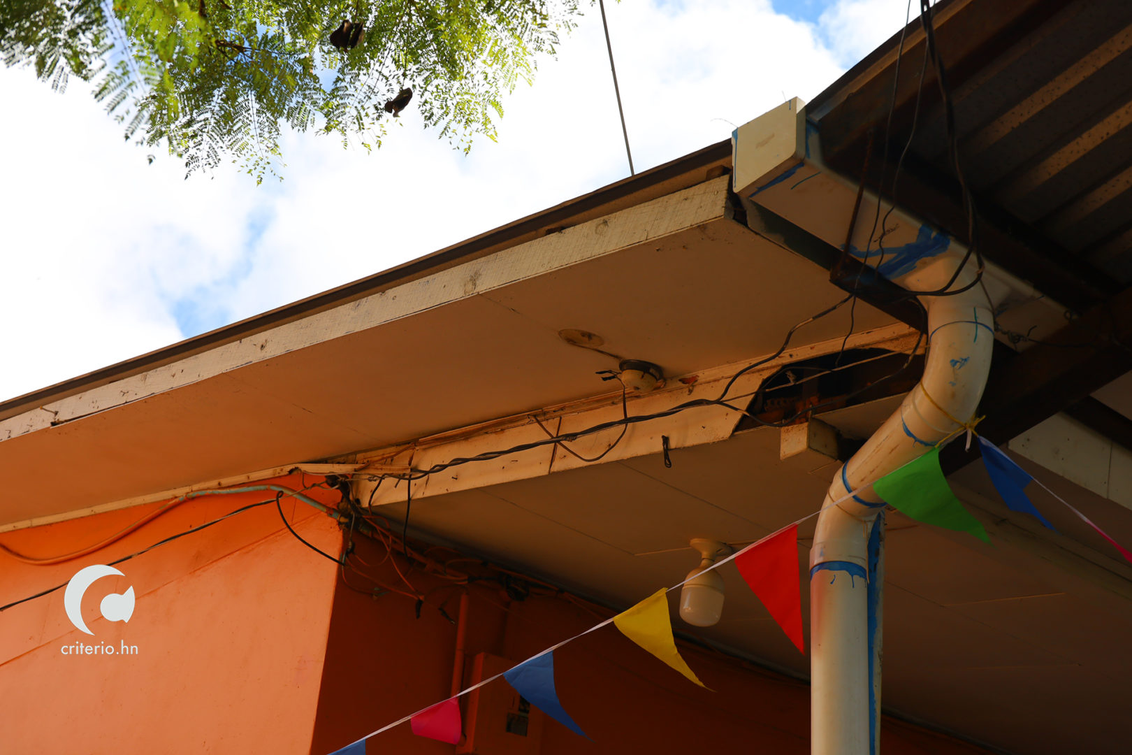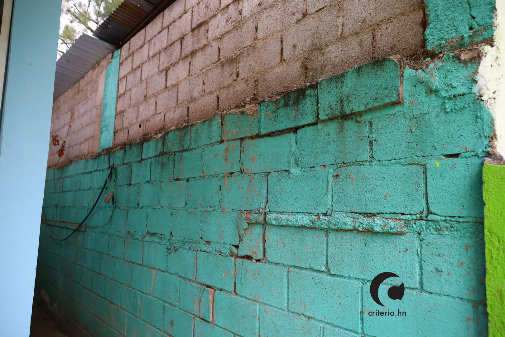 Por ejemplo, hay secciones del techo sujetas con bloques de cemento y muros agrietados que representan una amenaza para los 172 alumnos y 10 maestros que pasan gran parte del día en el lugar.