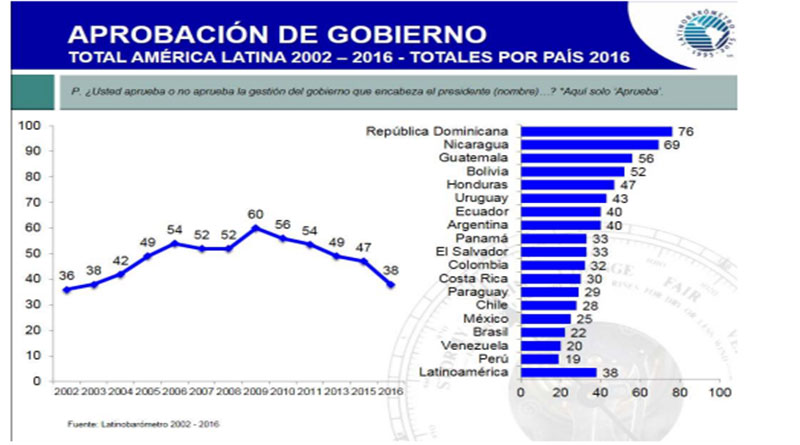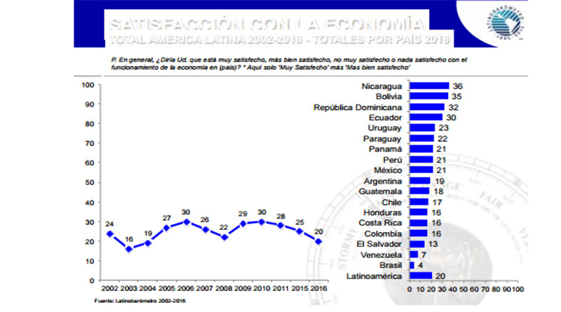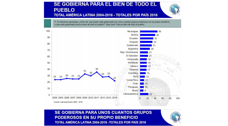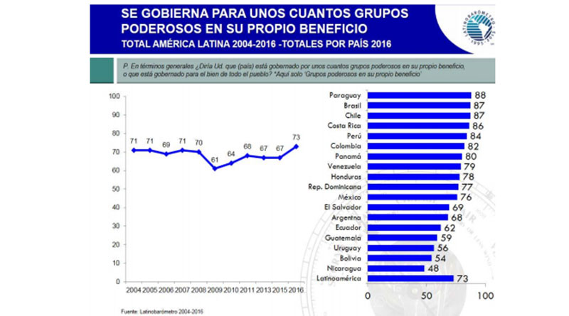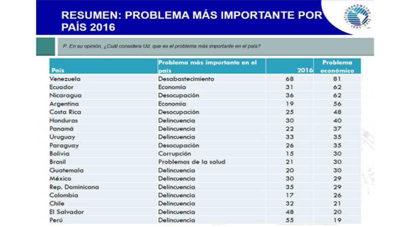 El resultado es parte de varios hallazgos analizados por la Corporación Latinobarómetro dentro del informe: “El declive de la democracia-Latinobarómetro 2016”.