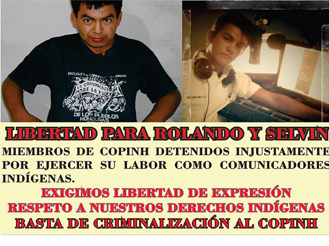 El COPINH está exigiendo la libertad inmediata de Rolando Gutiérrez y Selvin Milla y la devolución íntegra del equipo y contenidos audiovisuales del COPINH. Y hacen un llamado a la solidaridad a rechazar estos actos de criminalización, ya que hasta este momento los dos compañeros siguen detenidos.